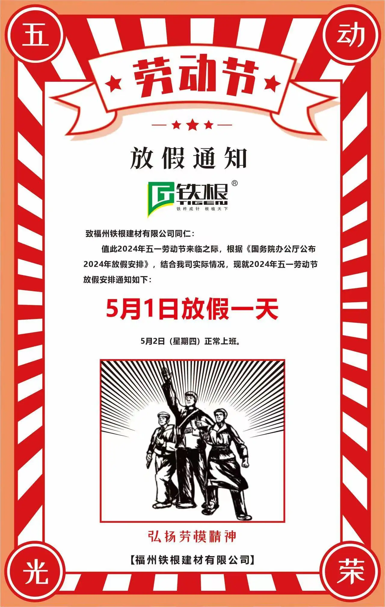 福州傑騰建材有限公司2024勞動節放(fàng&∏)假通(tōng)知(zhī)